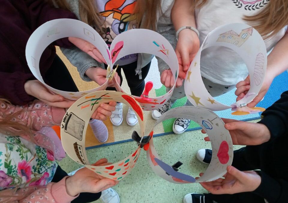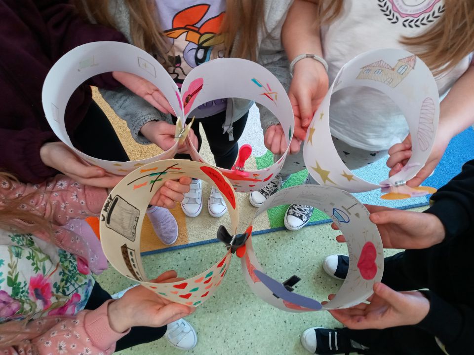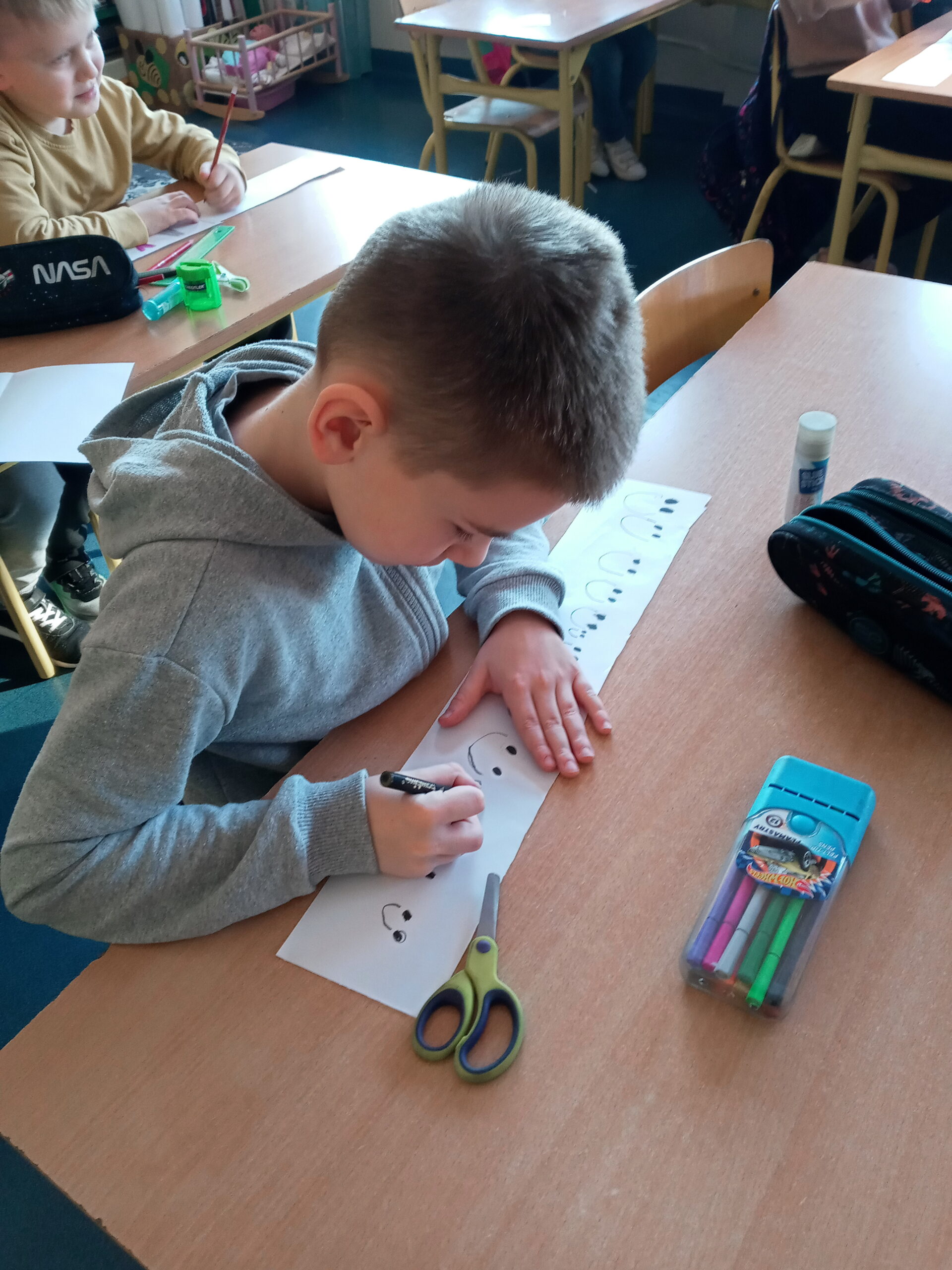 Z uczniami klas 1, 2 i 3 podczas katechezy zrobiliśmy kalejdoskop dobrych uczynków. Każde dziecko narysowało w kalejdoskopie dobre uczynki, które chciałoby wykonać.