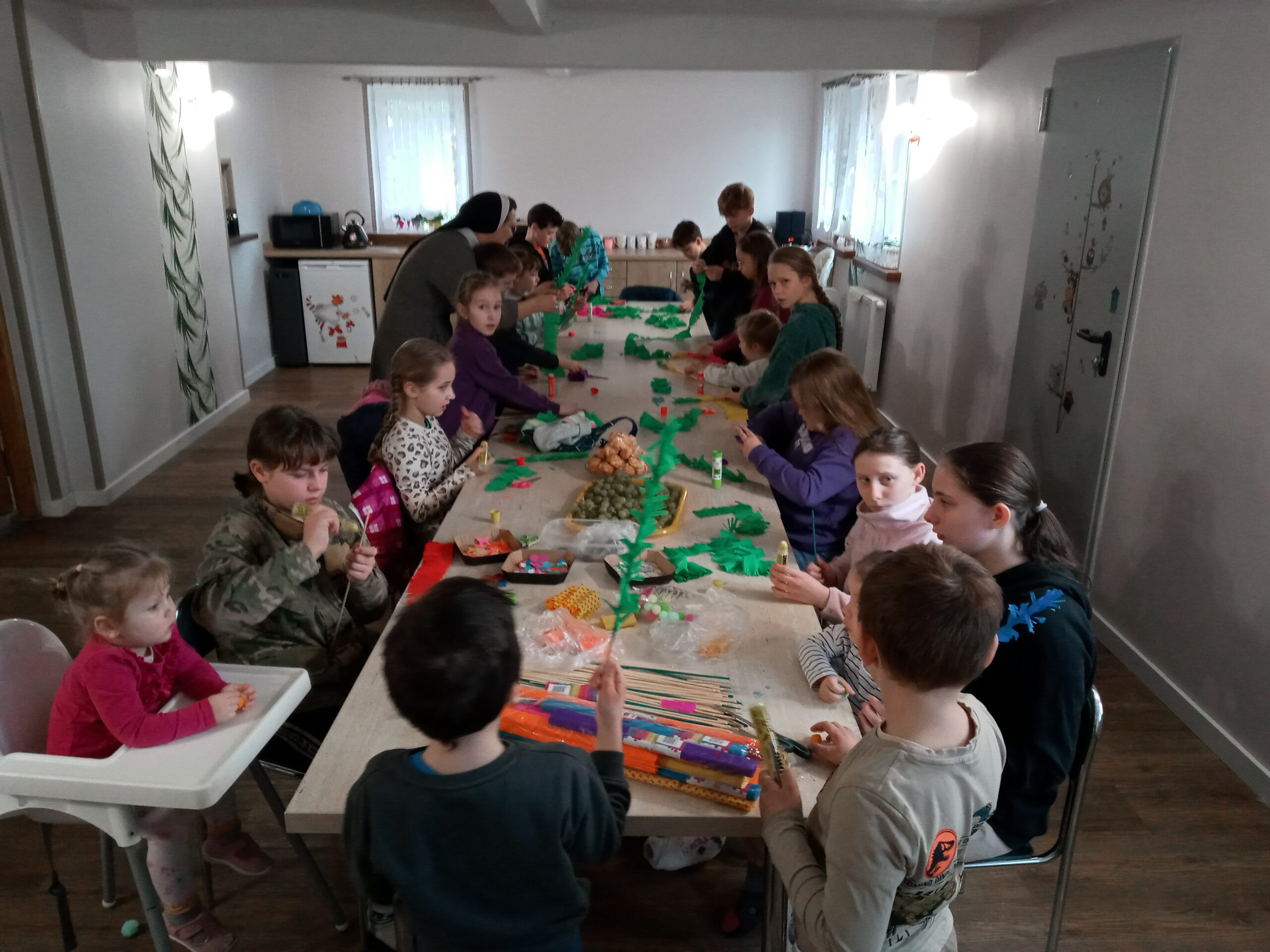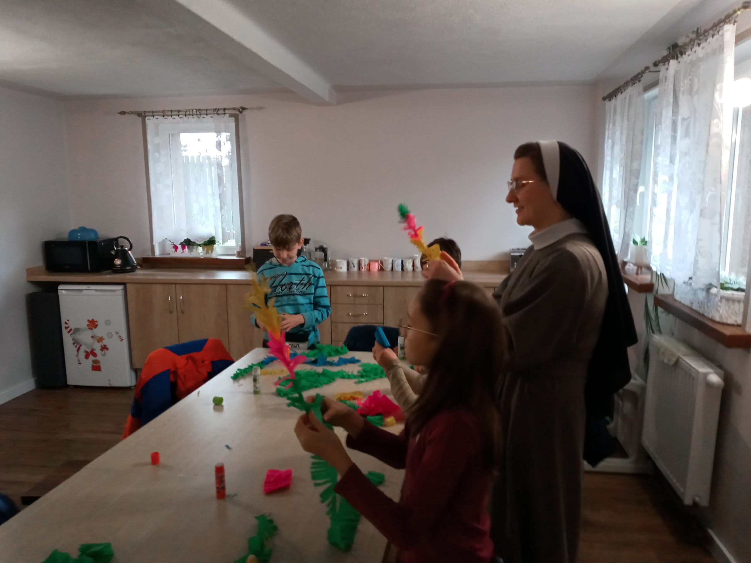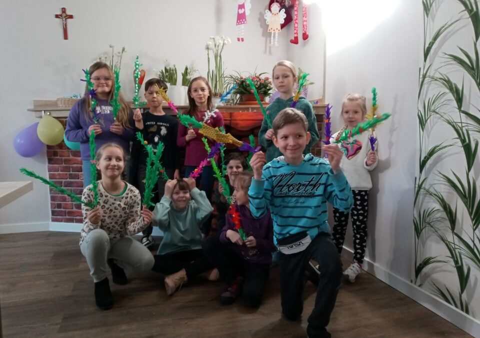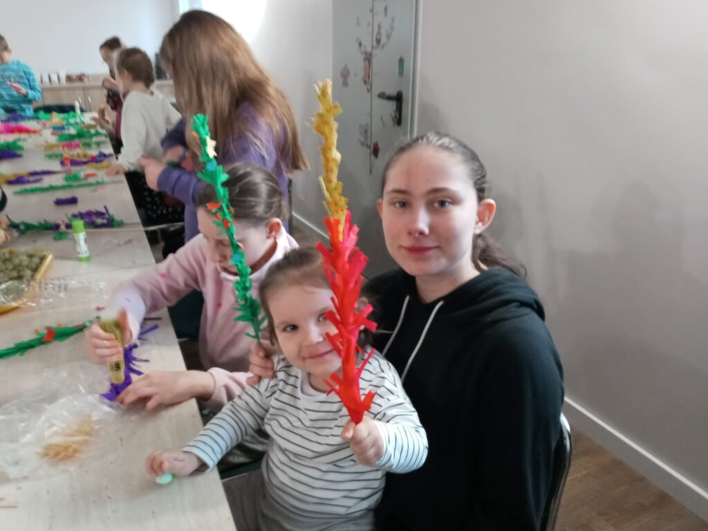 2024-03-29W sobotę 23 marca 2024 roku – dzień przed Niedzielą Palmową – grupa Terezjańskiego Apostolstwa Ufności w Wasilkowie spotkała się z dziećmi z Pogotowia Opiekuńczego Opoka, by wspólnie zrobić palemki.
