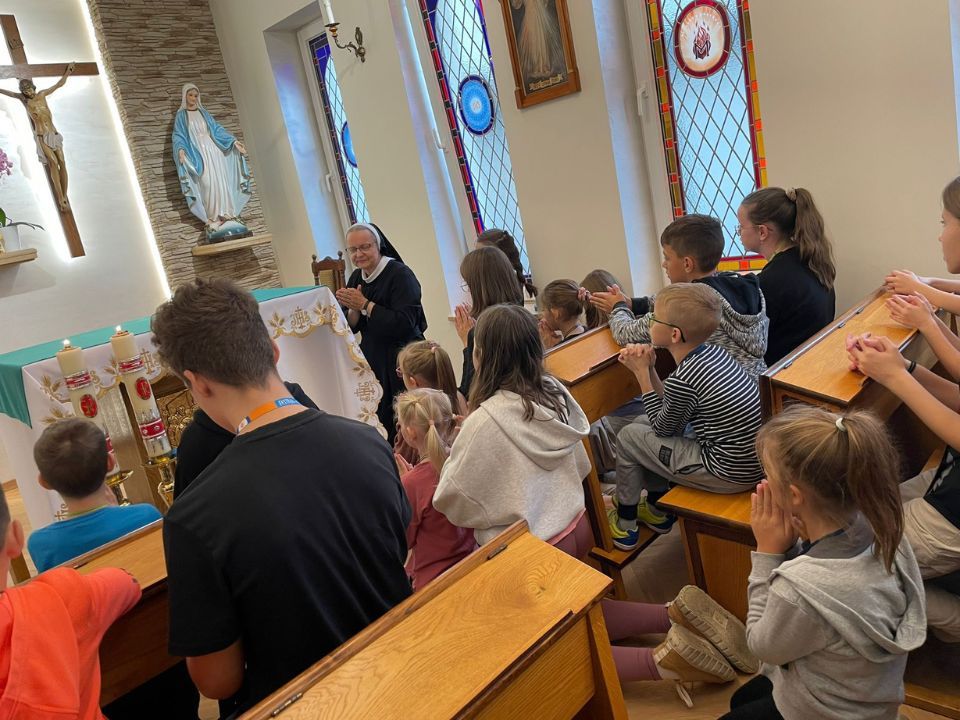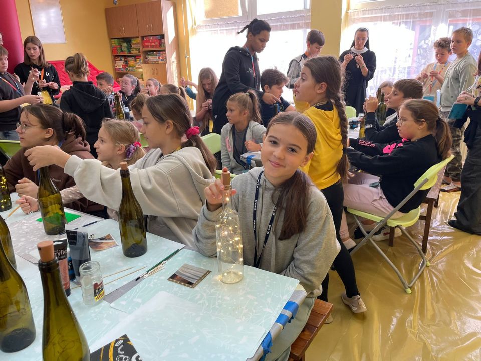 Od ósmej rano w domu zakonnym było już słychać dzwonek do drzwi, a co za tym idzie dość intensywne krzątanie się wolontariuszy i sióstr. Punktualnie o godzinie 9 znakiem krzyża rozpoczęliśmy nasze spotkanie. Po krótkim przedstawieniu ekipy warsztatowej i piosence na „Dzień dobry” uczestnicy zostali wprowadzeni w temat warsztatów. Tym razem do wykonania była lampka według autorskiego pomysłu. Efekty artystycznych zmagań można zobaczyć na zdjęciach. W przerwie był czas na II śniadanie w bardzo sympatycznej atmosferze. Po zakończeniu warsztatu artystycznego grupa warsztatowa udała się do zakonnej kaplicy na wspólną modlitwę i krótką katechezę. To wyjątkowe spotkanie poprowadziła s. Ludmiła. Dzieci wraz z animatorami powierzali różne intencje za wstawiennictwem Matki Bożej, a także śpiewem chwaliły Dobrego Boga.