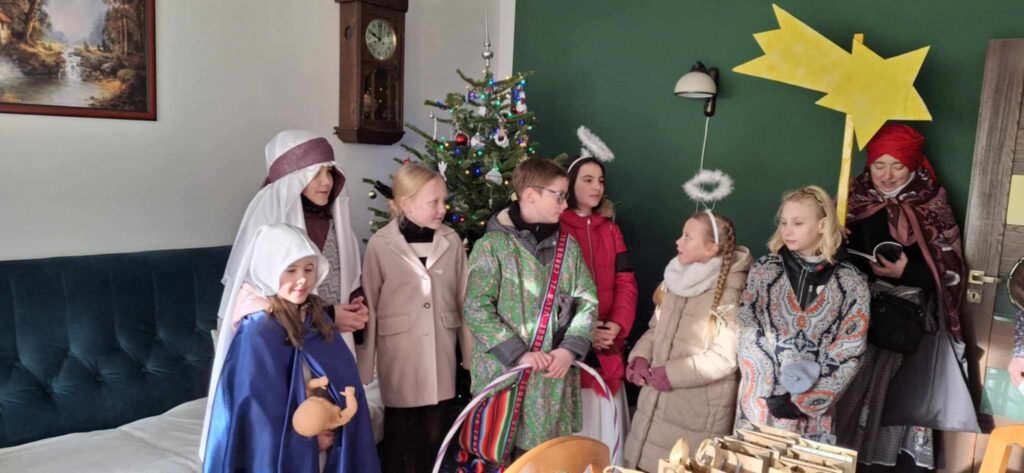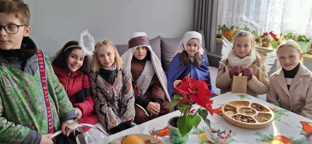 Rozpoczęliśmy nasze kolędowanie od uroczystego posłania podczas mszy świętej 26 grudnia 2024 r. Pełni radości i zapału wyruszyliśmy po domach parafii głosząc Jezusa Nowonarodzonego.