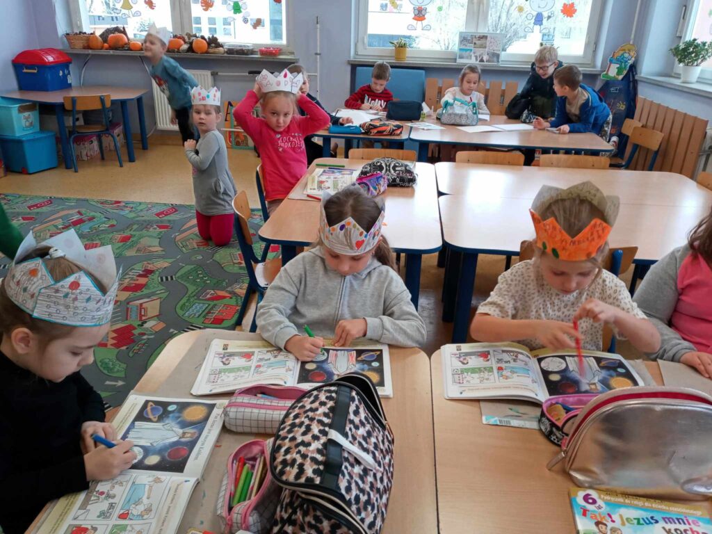 Sześciolatki zrobiły korony, które mają im przypominać o godności dziecka Bożego. Podczas pracy były zaangażowane i radosne. Każda korona była wyjątkowa, jak wyjątkowe są wszystkie dzieci.