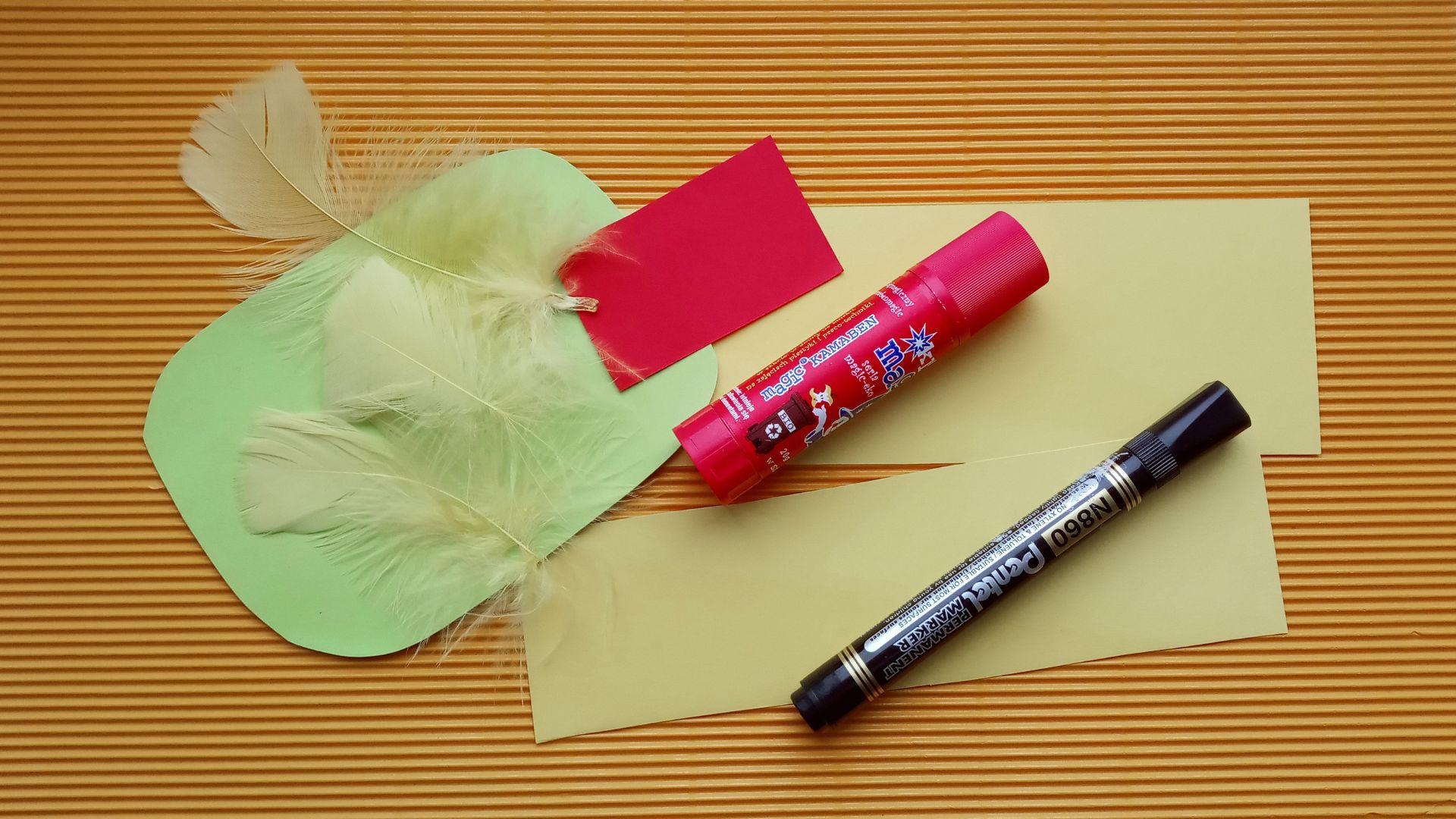 - kolorowy sztywny papier (żółty i zielony)
