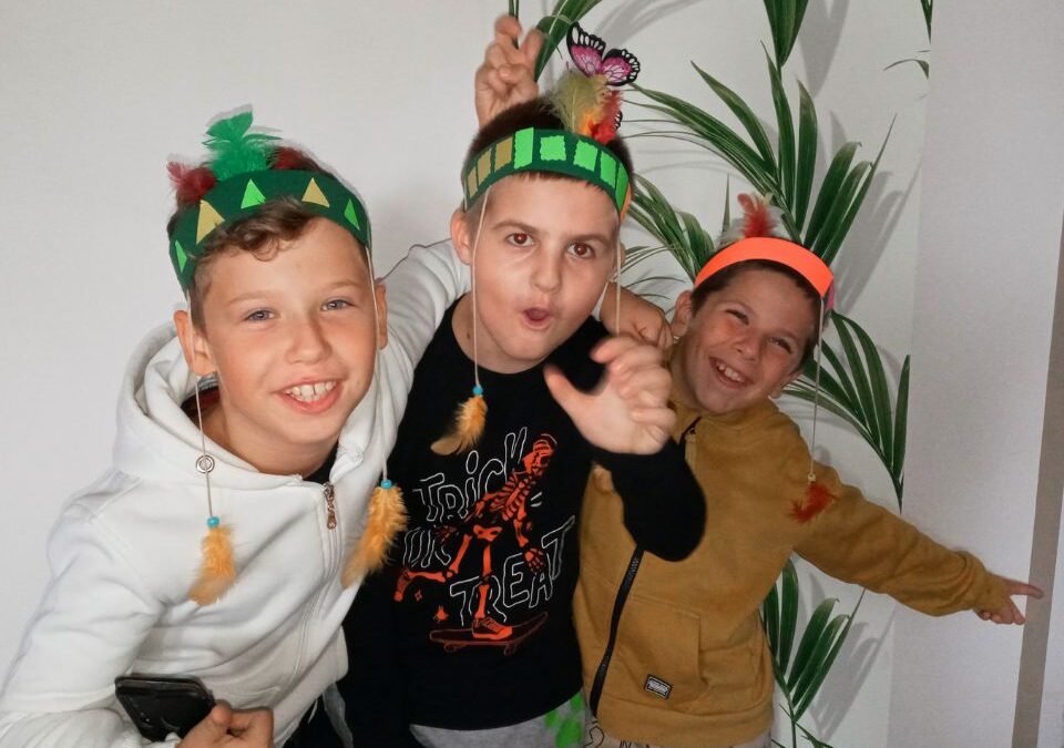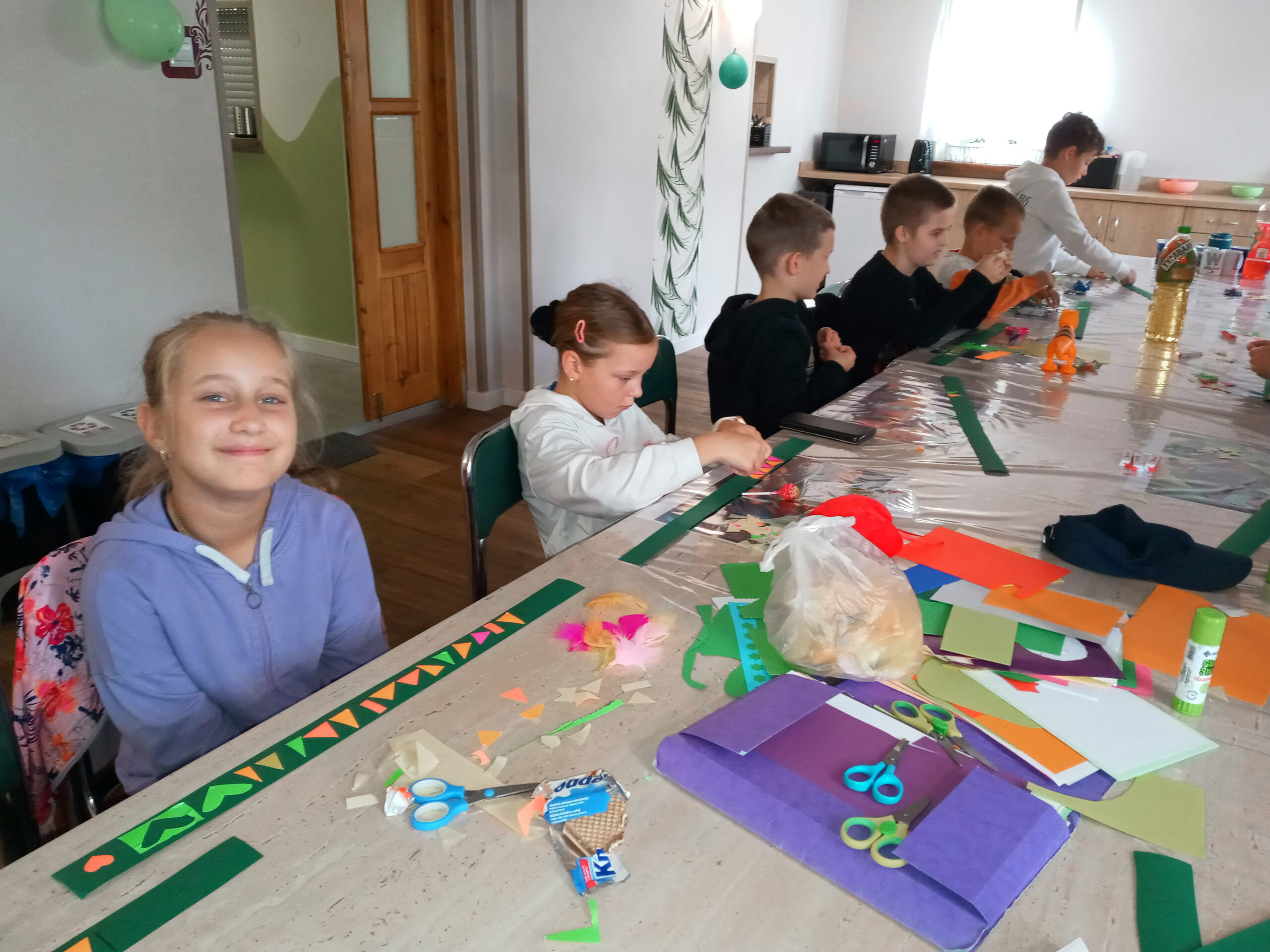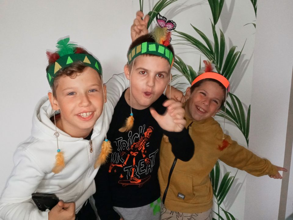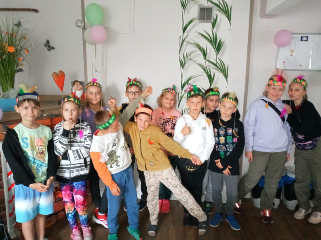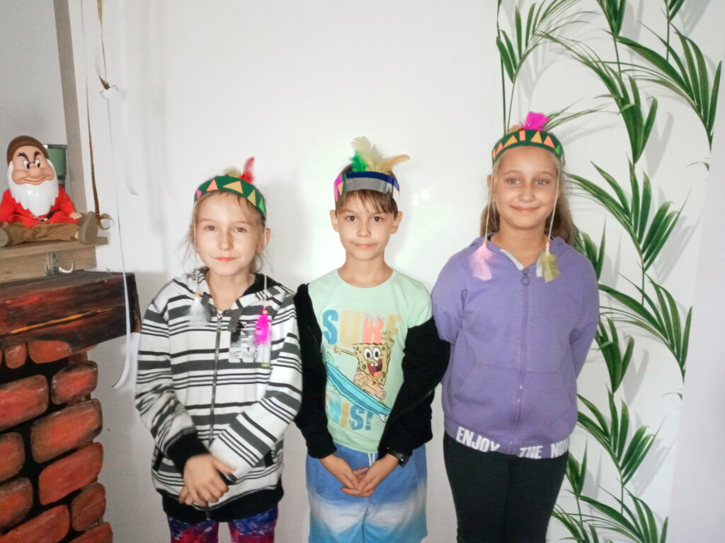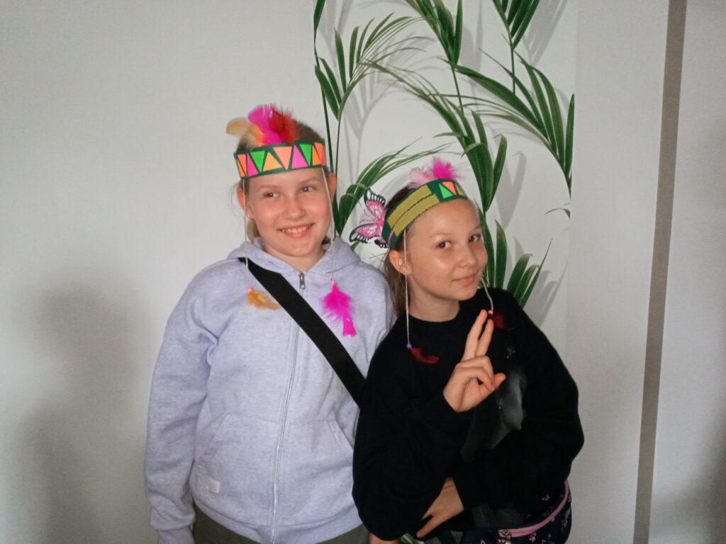 Potem udaliśmy się do sali, gdzie rozpoczęły się warsztaty plastyczne. Tym razem robiliśmy indiańskie pióropusze, które mają przypominać dzieciom o modlitwie za misjonarzy.