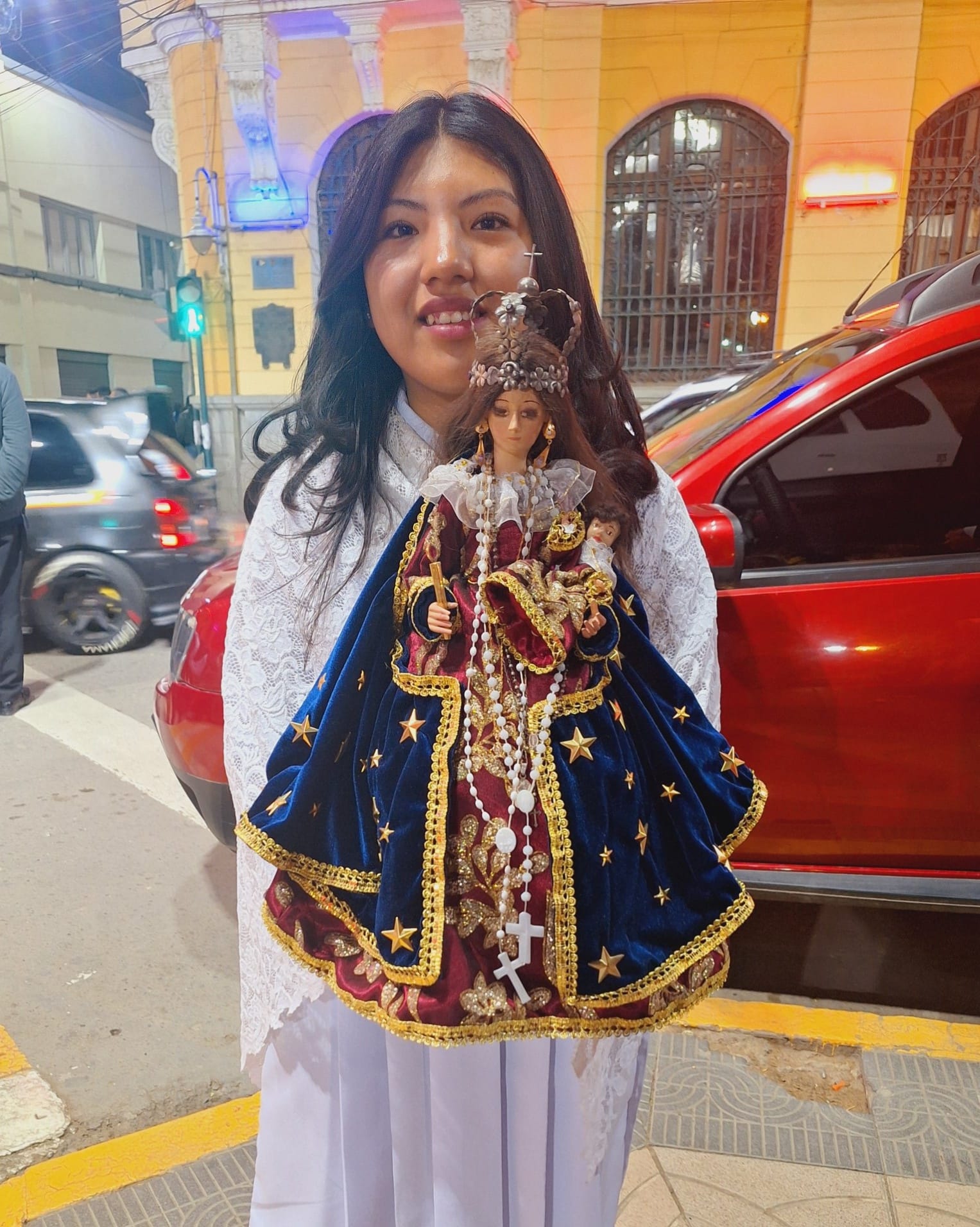 W boliwijskich miastach często organizowane są procesje z figurami lub obrazkami Matki Bożej. Indianie idą wówczas przez miasto niosąc ozdobioną kwiatami figurę Matki Bożej, modlą się i śpiewają.