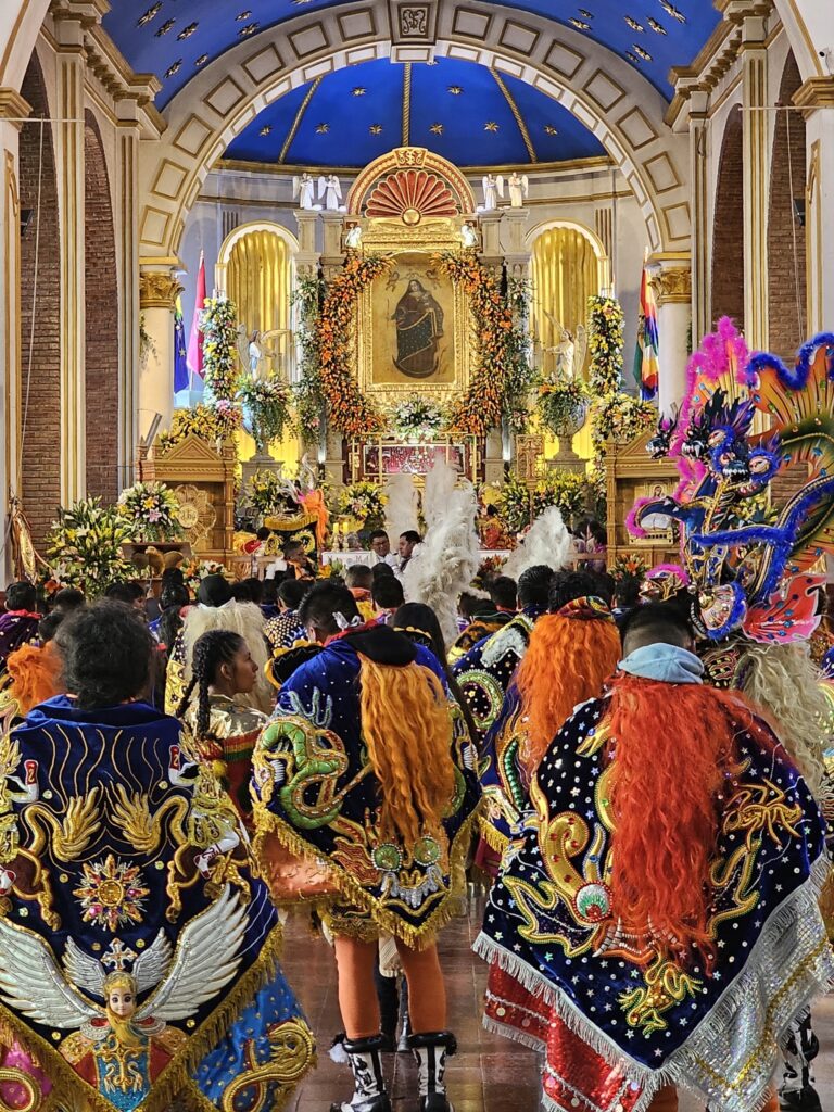 2024-11-21W święto Matki Bożej Gromnicznej odbywa się w Oruro festiwal grup folklorystycznych. Boliwijczycy pielgrzymują wiele kilometrów do figury Matki Bożej w Socavon w malowniczych tanecznych orszakach.