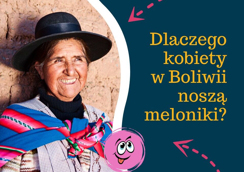 2024-08-12Kiedy 200 lat temu w Boliwii trwała budowa linii kolejowej pracowało tam wielu obywateli Wielkiej Brytanii. Większość Brytyjczyków nosiła wówczas meloniki, czyli kapelusze z niewielkim rondem i wypukłym denkiem, dlatego postanowiono specjalnie dla nich sprowadzić transport meloników. Niestety męskie nakrycie głowy przysłano w za małym rozmiarze. Przedsiębiorcy, aby nie doznać strat finansowych postanowili sprzedać kapelusze Boliwijczykom. Jednak Indianie nie byli zainteresowani dziwnym nakryciem głowy. Brytyjscy biznesmeni w desperacji postanowili namówić do zakupu kapeluszy boliwijskie kobiety. Wmówili im, że wszystkie brytyjskie kobiety noszą meloniki i jest to bardzo szykowne nakrycie głowy. Indianki uwierzyły obcokrajowcom i zaopatrzyły się u handlowców w szykowne i modne kapelusze. Kobiety w Boliwii do dzisiaj noszą na głowach meloniki i są z tego bardzo dumne.