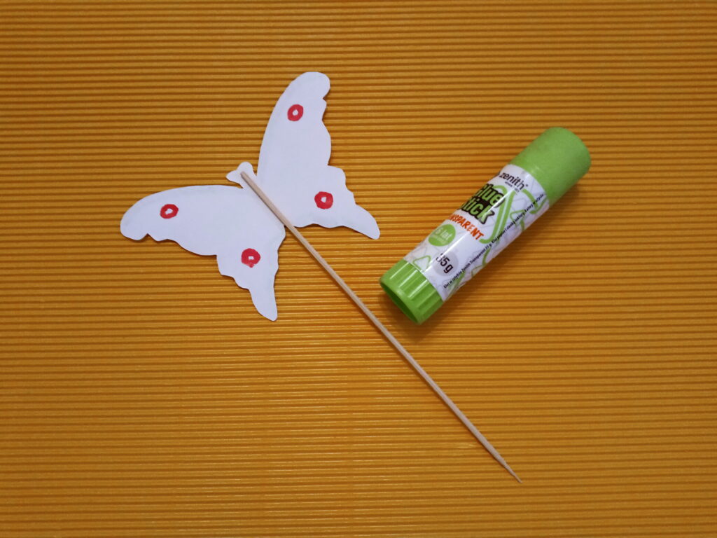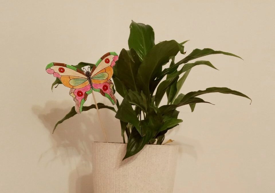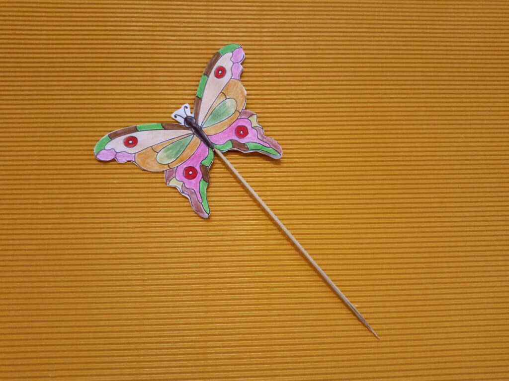 Zapraszamy cię do wykonania motyla na patyczku, który będzie można włożyć do ziemi w doniczce z kwiatami. Kolorowy motyl doda uroku twoim kwiatom.