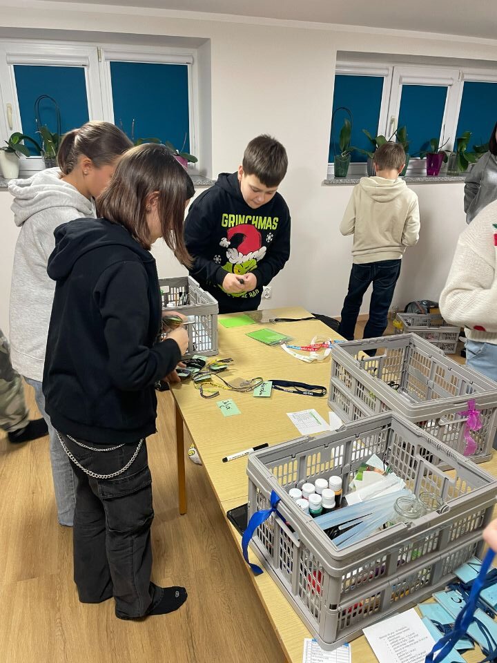 2023-12-18W sobotę 9 grudnia w naszym domu w Suwałkach miały miejsce kolejne warsztaty formacyjno – artystyczne dla dzieci. Z tym pięknym i niezwykle twórczym wydarzeniem niepodzielnie związana jest posługa młodzieżowego wolontariatu, do którego należą uczniowie klas starszych Szkoły Podstawowej nr 4 w Suwałkach. Aby dobrze przygotować warsztaty młodzież spotkała się już w piątek wieczorem. Na początku nowi wolontariusze tradycyjnie przeszli krótkie szkolenie w zakresie funkcjonowania warsztatów i zasad jakich jako ekipa organizacyjna musimy przestrzegać. Siostra Aneta, która jest odpowiedzialna za wolontariuszy, podzieliła młodzież na grupy zadaniowe oraz rozdzieliła funkcje. Grupa gospodarcza przygotowywała salę, miejsca na posiłek, szatnię i recepcję, natomiast animatorzy kompletowali materiały dla grup i przygotowywali identyfikatory. Był to także czas na radosne rozmowy 🙂