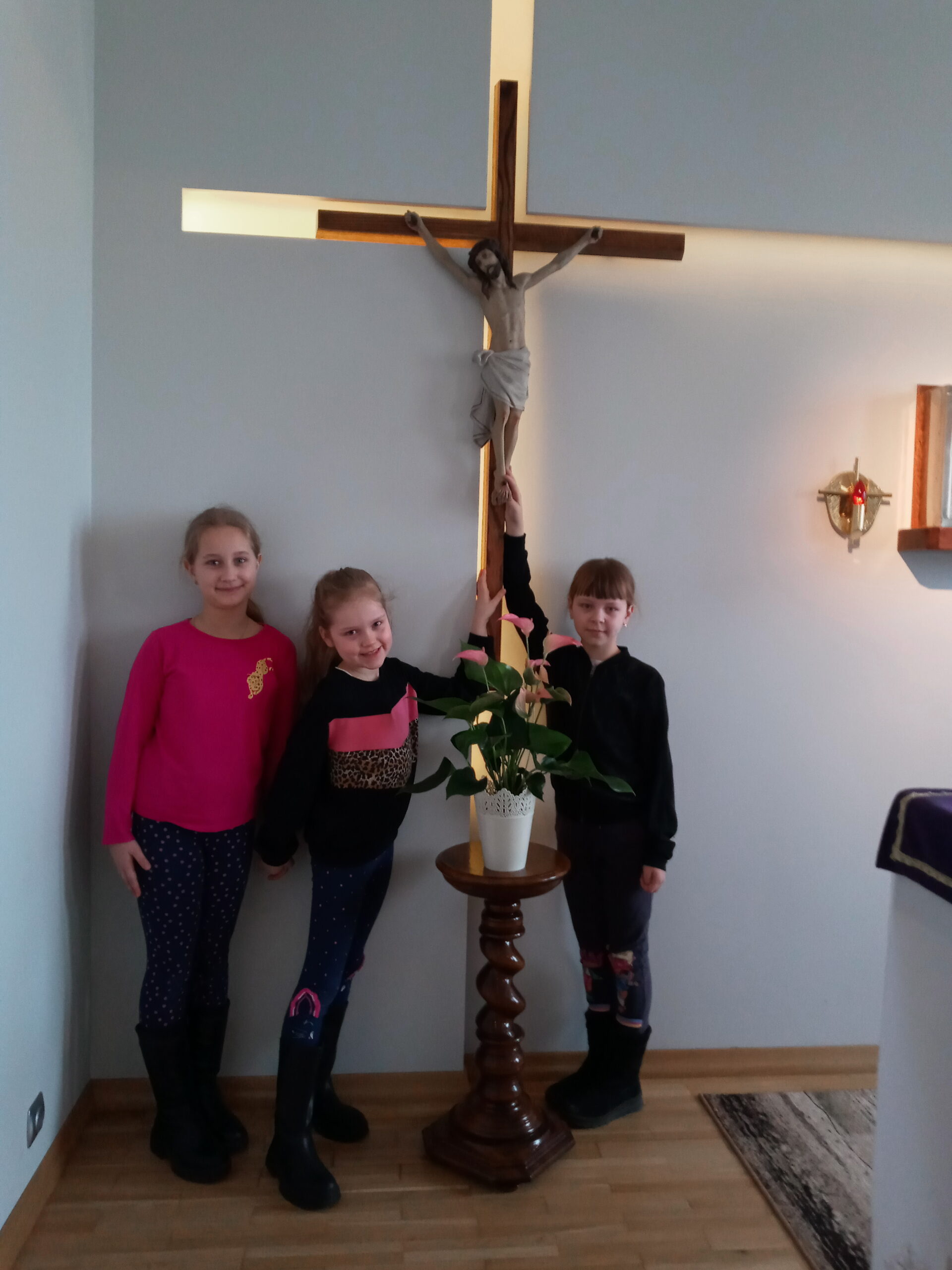 W rozważanym przez nas fragmencie Pisma Świętego była również mowa o tym, że Bóg wykupił swój lud, czyli wszystkich ludzi. Ceną wykupu była krew Pana Jezusa wylana za nas na krzyżu, dlatego podczas adoracji krzyża w kaplicy dziękowaliśmy Bogu za to, że nas ocalił od śmierci.