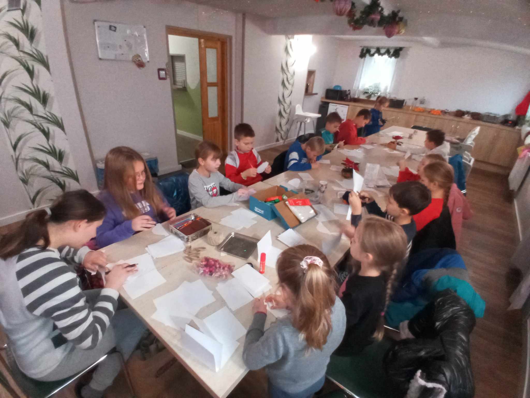 Po modlitwie rozpoczęły się warsztaty plastyczne. Dzieci wykonały z papieru bombkę 3D. Wymagało to wielkiej precyzji i cierpliwości, ale ostatecznie wszystkie ozdoby na choinkę wyglądały rewelacyjnie!