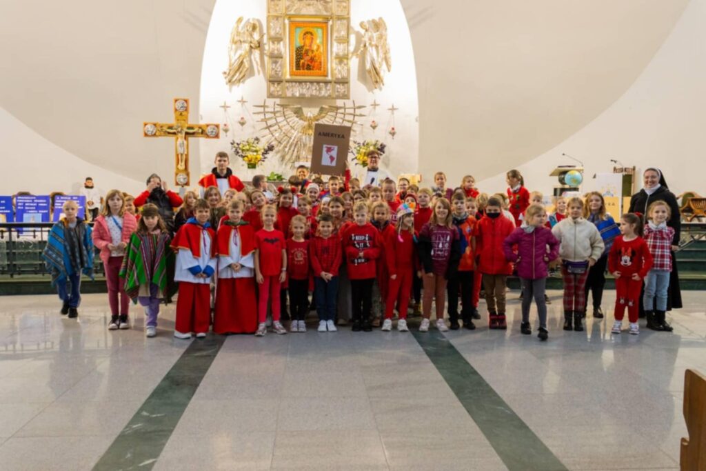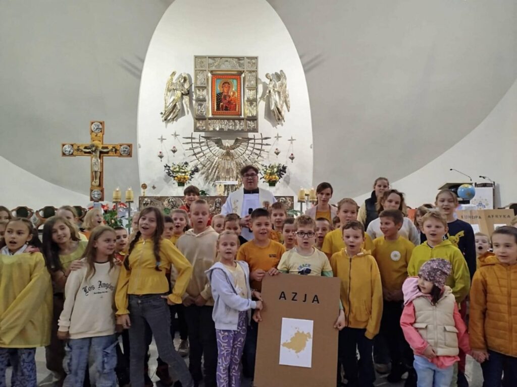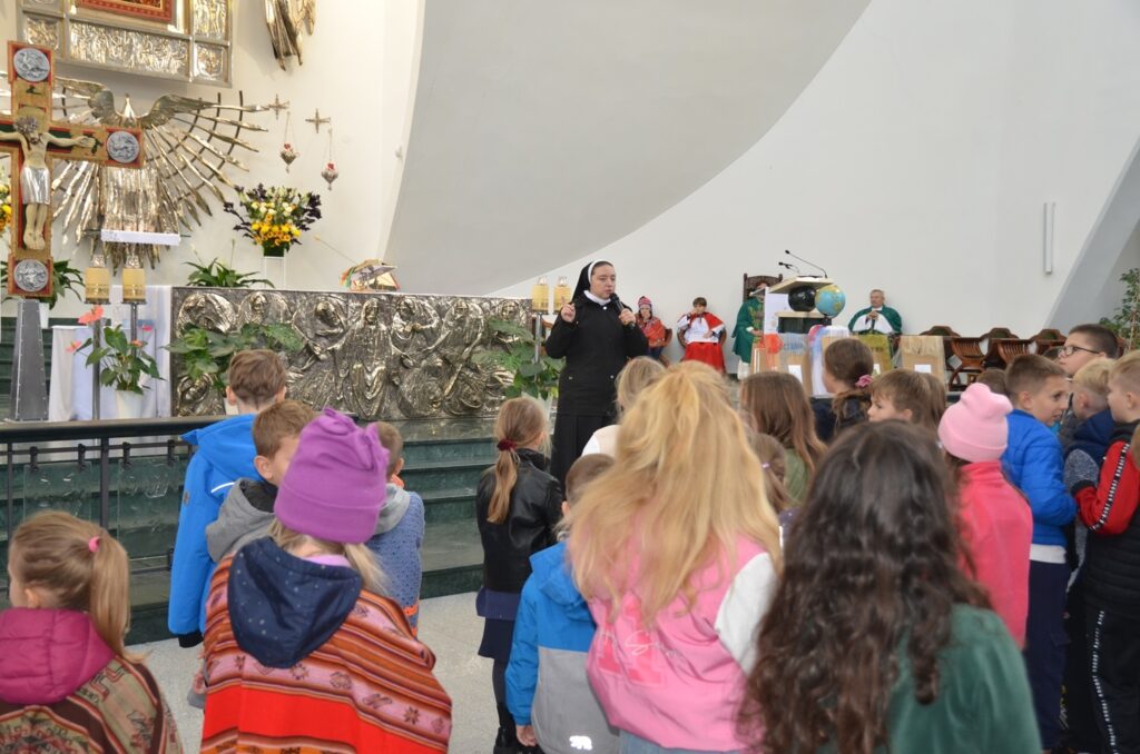 W tej radości mieliśmy chwilę zadumy nad życiem dzieci w trudnych warunkach misyjnych, czy to Afryki, czy Ameryki Południowej. Dzieci także usłyszały, że też one mogą być misjonarzami i nieść Jezusa do swoich najbliższych. Na koniec umówiliśmy się w tygodniu misyjnym w szczególny sposób modlić się za misjonarzy i misjonarki, oraz Lidzi, do których oni są posłani. I taką zachętą i postanowieniem zaczęliśmy tydzień misyjny.