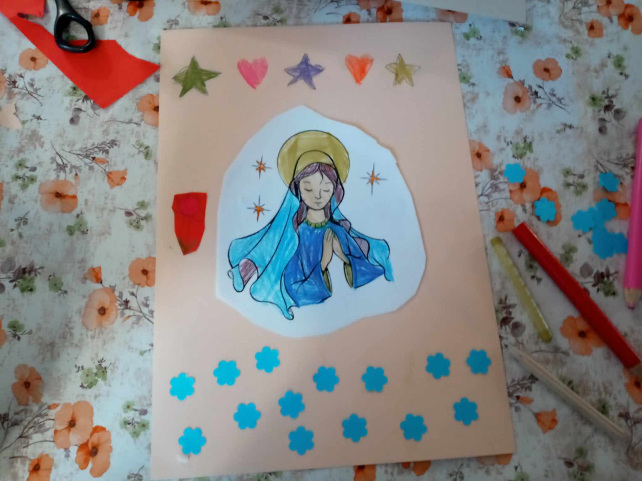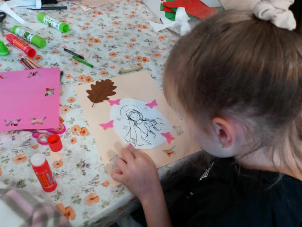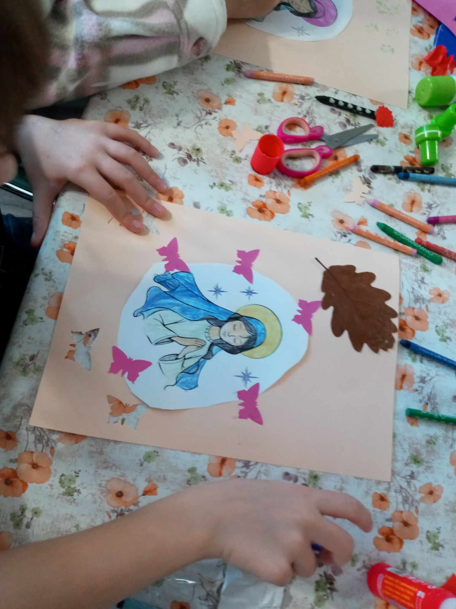 Podczas warsztatów plastycznych dzieci pokolorowały obrazek Maryi i ozdobiły go. Każdy wykonał pracę zgodnie ze swoimi pragnieniami. Każda praca była niepowtarzalna.