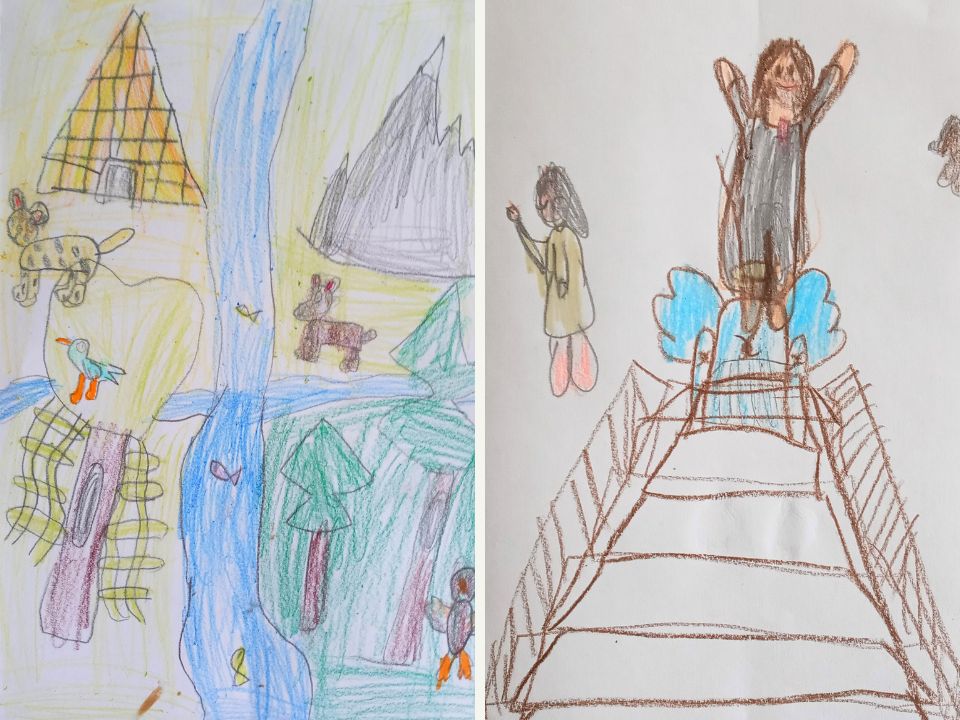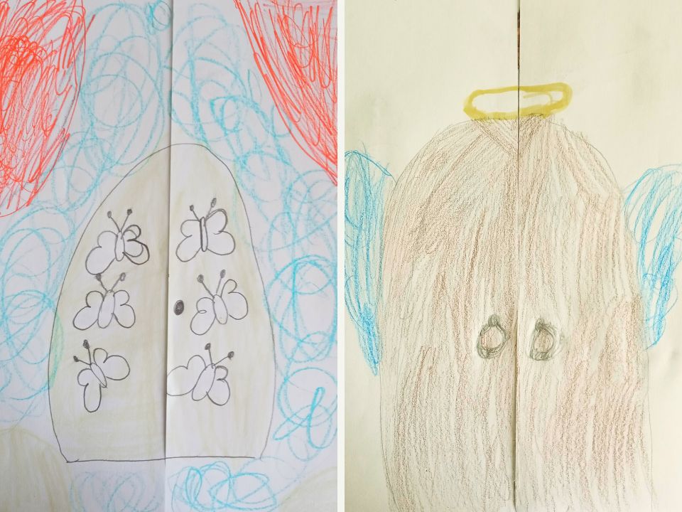 Na zakończenie religii dzieci wykonały pracę plastyczną. Narysowały wejście do nieba, a wewnątrz złożonej kartki namalowały swoją osobistą wizualizacje Królestwa Bożego. Niektóre dzieci dodatkowo naszkicowały osoby, które chciałyby spotkać w niebie.