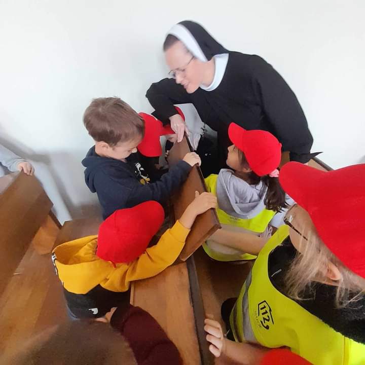 Dzieci były bardzo zainteresowane tym, jak wygląda pokój gościnny, a także pytały czy siostry mają pralkę i telewizor? Pytały o wiszący dzwonek na zakonnym korytarzu oraz o dzieci, które mieszkają z siostrami. Bardzo ucieszyły się z tego, że mogły zajrzeć do środka zakonnych klęczników. Były również zachwycone tym, że siostry mają pieska, który wabi się Luna.