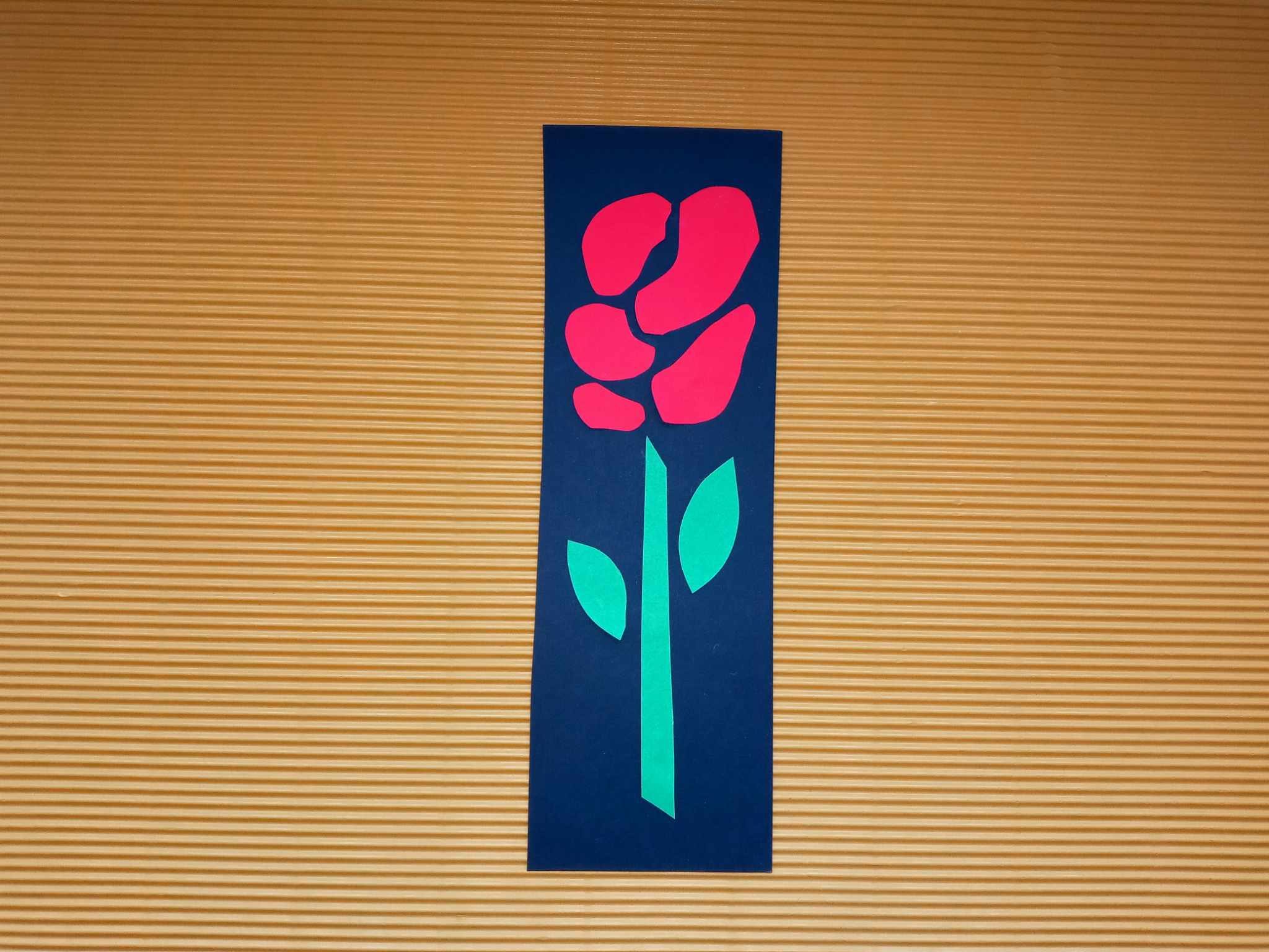 Wytnij z kartki bloku technicznego pasek koloru czarnego o wymiarach 6cm/20 cm. Następnie narysuj na czerwonej kartce płatki róż. Przyklej je do zakładki układając kształt kwiatu. Potem z zielonej kartki wytnij łodyżkę i listki róży. Przyklej do zakładki. Różana zakładka jest już gotowa!