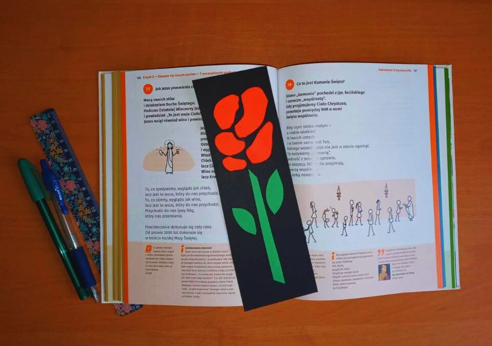 2023-10-03Św. Teresa od Dzieciątka Jezus na obrazach i figurach przedstawiana jest z bukietem róż w ręku. Kwiat róży kojarzy się nam z deszczem łask, który obiecała zsyłać na ziemię. Zachęcamy cię do samodzielnego wykonania zakładki z różą. Niech przypomina ci o tym, że zawsze możesz pomodlić się do św. Teresy i poprosić ją o potrzebne łaski z nieba.